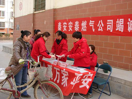 近年來隨著我市城市化進(jìn)程腳步的加快,越來越多的舊村改造房拔地而建,天然氣作為生活能源已走進(jìn)千家萬戶。然而安全用氣的意識和常識都未能達(dá)到廣范的普及和應(yīng)用。自安泰燃?xì)夤境闪⒁詠?,始終積極組織各種公共場所和居民社區(qū)的燃?xì)獍踩麄髦黝}活動,并借助這個平臺向廣大市民群眾大力宣傳、普及有關(guān)天然氣的法律、法規(guī)知識和安全用氣常識,受到了廣大民用戶的廣泛好評。