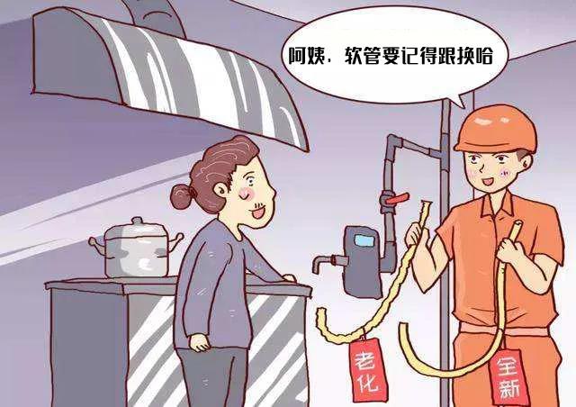 居民家中燃?xì)夤艿琅c燃?xì)庠罹呦噙B接部分的軟管(建議使用金屬波紋管)請在規(guī)定時間內(nèi)使用,超期使用可能會造成膠管老化、龜裂、漏氣;膠管長度不宜超過2米且不可穿越墻體;在使用時,膠管不要離灶火太近,以免發(fā)生變形漏氣;用戶應(yīng)在膠管兩端安裝喉箍加以固定(不能用金屬絲代替)等。