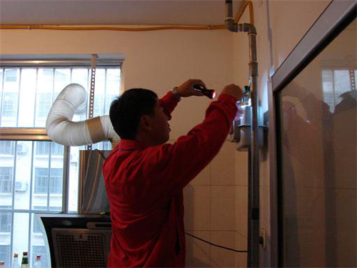 工作人員對灶前管道連接處進行檢漏