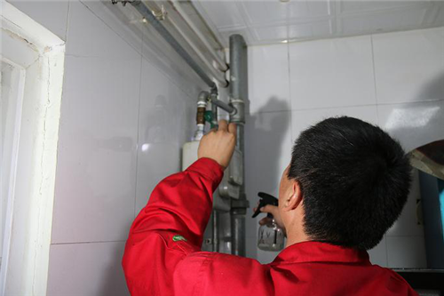 安檢人員檢查室內(nèi)燃?xì)夤艿?br />