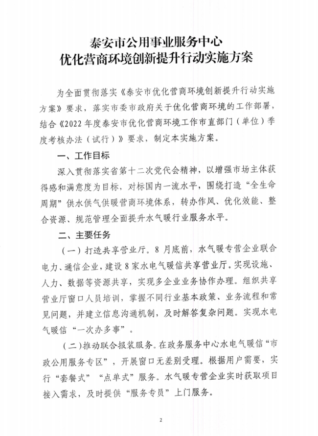 關(guān)于印發(fā)《泰安市公用事業(yè)服務(wù)中心優(yōu)化營商環(huán)境創(chuàng)新提升行動實施方案》的通知