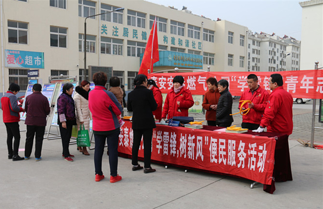 為全面貫徹黨的十九大精神,深入弘揚(yáng)社會主義核心價值觀以及無私奉獻(xiàn)的雷鋒精神,3月5日-6日安泰燃?xì)夤緦W(xué)雷鋒志愿者服務(wù)隊(duì)走進(jìn)社區(qū),開展了以“學(xué)雷鋒 樹新風(fēng)”為主題的便民服務(wù)活動。