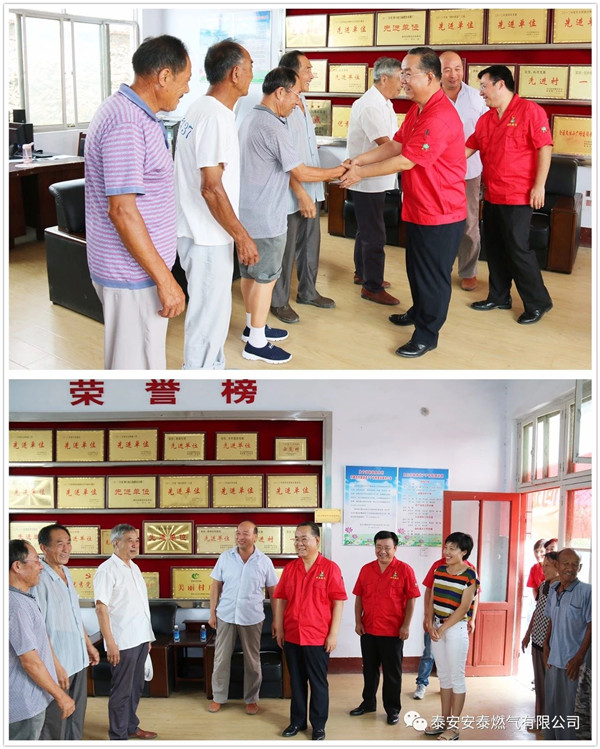 7月24日,安泰燃?xì)恻h支部在泰山玻纖黨委委員、副總經(jīng)理、安泰燃?xì)舛麻L趙恒剛,黨支部書記、常務(wù)副總經(jīng)理佟慶的帶領(lǐng)下,以建黨97周年和建軍91周年為契機(jī),前往道朗鎮(zhèn)魚東村開展“慰問退伍老軍人和老黨員,共聚道朗魚水情”活動(dòng)。道朗鎮(zhèn)副鎮(zhèn)長張秀云、魚東村支部書記王勇等人出席此次活動(dòng)。