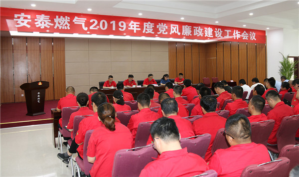 7月24日上午,安泰燃?xì)庹匍_2019年黨風(fēng)廉政建設(shè)工作會議,深入學(xué)習(xí)貫徹黨的十九大、十九屆二中、三中全會以及十九屆中央紀(jì)委三次全會和集團(tuán)公司黨風(fēng)廉政建設(shè)和反腐敗工作會議精神,總結(jié)2018年黨風(fēng)廉政建設(shè)和反腐敗工作,圍繞堅持黨的領(lǐng)導(dǎo)、加強黨的建設(shè)、全面從嚴(yán)治黨和推動全面完成公司年度目標(biāo)任務(wù),對公司2019年黨風(fēng)廉政建設(shè)和反腐敗工作進(jìn)行部署。泰山玻纖黨委委員、副總經(jīng)理、安泰燃?xì)夤径麻L趙恒剛就相關(guān)工作做出重要部署,泰山玻纖黨委副書記、紀(jì)委書記、工會主席王麗英出席會議并做重要講話,安泰燃?xì)夤军h委書記、常務(wù)副總經(jīng)理佟慶主持會議。安泰燃?xì)忸I(lǐng)導(dǎo)班子成員、全體黨員、班組長以上管理人員40余人參加了會議。
