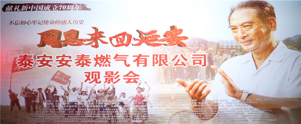會后,與會成員觀看了影片《周恩來回延安》,感受中國共產(chǎn)黨與人民血肉相連及不要初心、不懈奮斗、砥礪前行的精神。通過這次觀影,安泰公司黨員職工重溫了老一輩革命家的故事,受到了精神上的洗禮,收獲了更多的前進(jìn)動力,大家紛紛表示,要不忘初心,牢記使命,為實現(xiàn)新時代黨的歷史使命而不懈奮斗、為推動安泰燃?xì)饪焖?、穩(wěn)健發(fā)展而不斷努力。