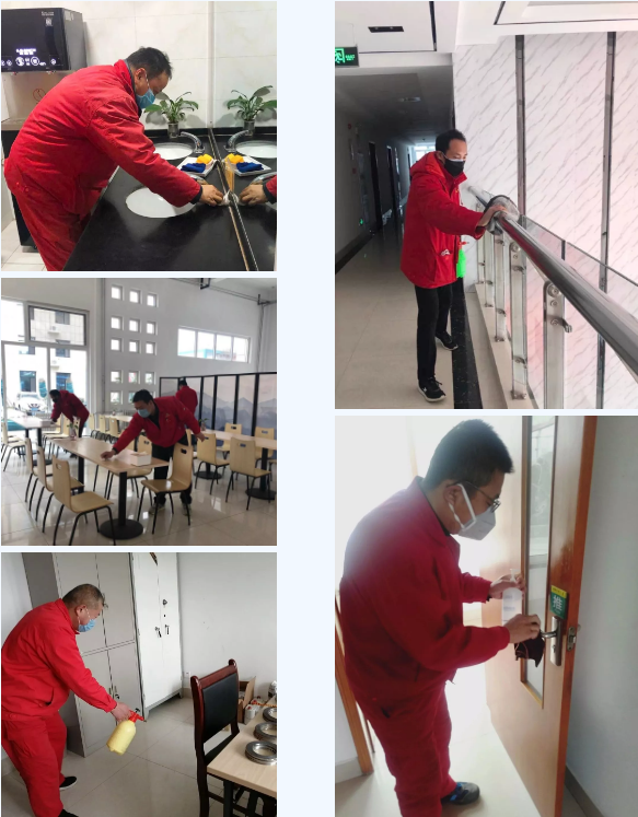 同時(shí),黨員與值班人員自發(fā)對(duì)公司所有的衛(wèi)生間、扶梯、門把手、電源開關(guān)、餐桌椅、垃圾桶等公用設(shè)施進(jìn)行了全面、細(xì)致的消毒工作,使消毒殺菌趕在病毒傳播之前。
