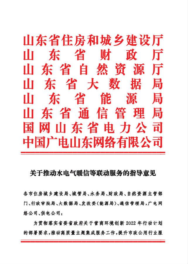關(guān)于推動(dòng)水電氣暖信等聯(lián)動(dòng)服務(wù)的指導(dǎo)意見