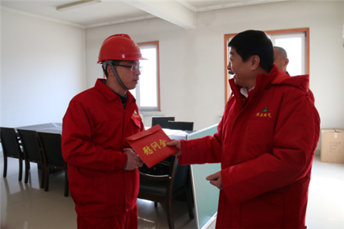 2016年已滿載碩果駛過,2017年的鐘聲將在神州大地上回蕩。1月26日臘月廿九,安泰燃?xì)夤径麻L、總經(jīng)理賀國防、常務(wù)副總佟慶等一行趕赴生產(chǎn)一線,向春節(jié)期間堅守在一線工作崗位上的員工表示慰問,為他們送去節(jié)日的問候和新春的祝福。
